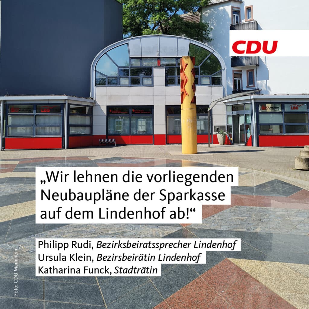 CDU Bezirksbeiräte lehnen Pläne der Sparkasse auf dem Lindenhof ab Weiterlesen »